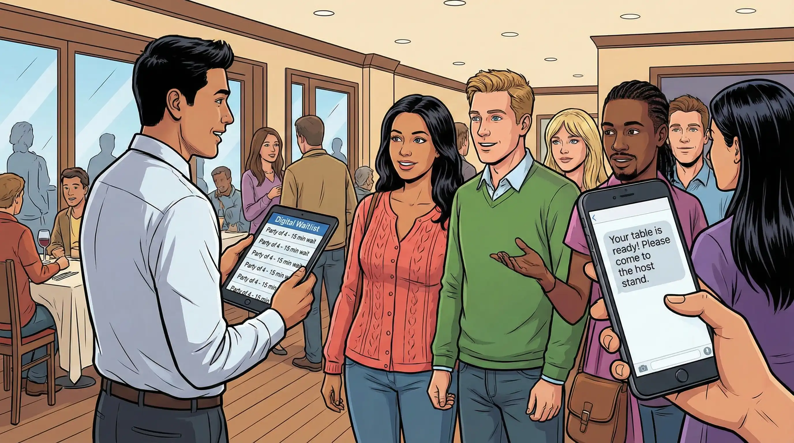 Pendant les périodes de forte affluence, la gestion des listes d'attente prend en charge les clients sans réservation et les informe par SMS lorsque des tables se libèrent. Les listes d'attente numériques permettent aux clients d'explorer les environs pendant qu'ils attendent leur tour, au lieu de les faire attendre dans des halls bondés ou de les obliger à se promener dans les environs. Cette fonctionnalité facilite la prise de réservation pour les clients spontanés et améliore leur expérience culinaire dès le début.